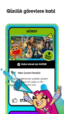 Gumball, Starfire ve Boz Ayı gibi sevilen Cartoon Network karakterleriyle güçlerini birleştir! Gezegenimize yardımcı olacak olumlu ve sürdürülebilir değişiklikleri nasıl yapabileceğinle ilgili faydalı ipuçlarını keşfet. Eyleme geçebilir ve dünyanın her yerinden çocuklarla İklim Koruyucuları görevlerinde yer alabilirsin. Fark yaratmak için gereken güce sahibiz, öyleyse hemen burada, şimdi başlayarak bu küresel harekete dahil olabilirsin!