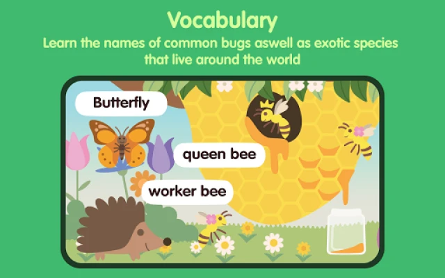 Bug life uygulaması, çocuklarınızın her böceğin ve böceğin yazılışını kolayca öğrenebileceği bir yazım öğrenme alanı içerir. Bu uygulama, yazımlarla böceklerin öğrenilmesini sağladığından, çocuklarınıza okul öncesi ve anaokulu öğrenimi için bir avantaj sağlayın.