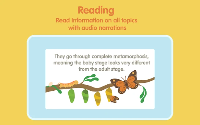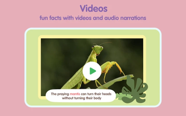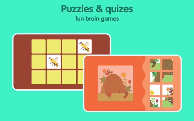 Sesli bir okul öncesi öğrenme bulmaca uygulaması arıyorsanız uygulamamızı deneyin. Çocuklarınıza böcekleri öğretmek için sesli farklı kitaplarımız var. Her böceğin ev, yiyecek ve daha fazlası gibi gerçekleri içeren renkli grafiklerini hazırladık. Uygulama, çocuklarınızın öğrenmelerini kolaylaştıracak bilgiler içeren birçok eğitici video içerir.