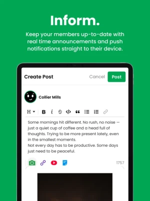 The connect. app was built to help organizations share content, drive culture, enhance communication, and build community. Create a completely customized group with your organization's branding, safely communicate one-to-one or one-to-many through our fully monitored messages, disseminate relevant content to your group and sub-group members, and centralize resources in one space.