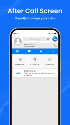Easily manage calls with our After Call feature! Access favorite contacts, block unwanted calls, or add new contacts directly after every call.