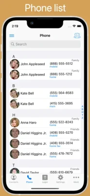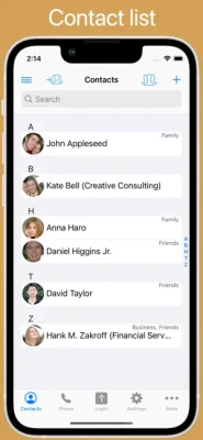 • Hide selected contacts in an unlimited number of passcode protected areas
