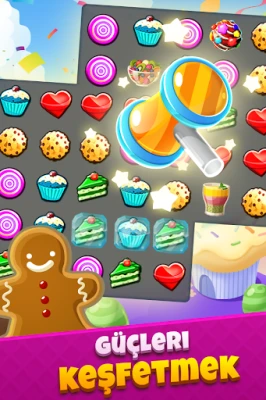🍪 yemek pişirme oyunlarında benzersiz güçlendirmelere sahip gevrek ve heyecan verici 3'lü eşleştirme şeker oyunu yükle