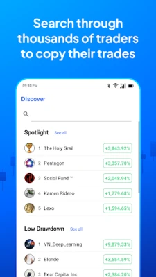 • Thousands of traders to choose from and copy their trades.