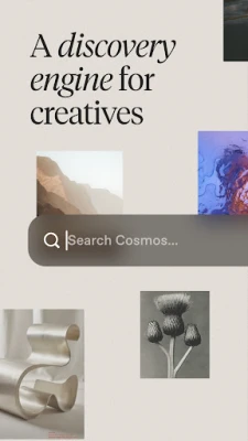 — Search by image or color. Looking for something specific? Upload a photo or select a color palette to find visually related content. Cosmos lets you search the way creatives actually think—visually.
