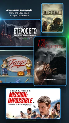 Απόλαυσε την απόλυτη ψυχαγωγία με εξαιρετικό περιεχόμενο, αγώνες από τα κορυφαία πρωταθλήματα του κόσμου σε Full HD και 4k ανάλυση, καθώς και τις πιο πρόσφατες ταινίες από ένα πλούσιο κατάλογο, συναρπαστικές σειρές, ντοκιμαντέρ από κορυφαίους παραγωγούς και παιδικά προγράμματα, αλλά και μια μεγάλη γκάμα ζωντανών μεταδόσεων από Ελληνικά και διεθνή κανάλια.