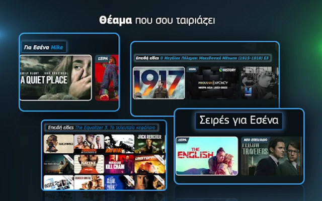 Ξεχωριστές προτάσεις για τον καθένα θα σε κάνουν να ξεχάσεις την αναζήτηση στα κανάλια και τις On Demand υπηρεσίες, αφού η εφαρμογή της COSMOTE TV τις ενοποιεί προτείνοντας το καλύτερο για εσένα!