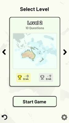 Standard quizzes allow you to learn each topic by progressing through a series of levels, each covering additional countries.