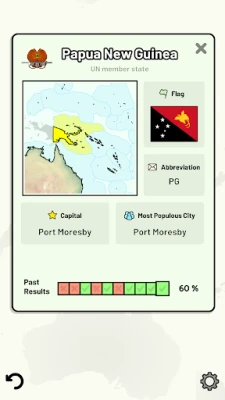 Customizable quizzes allow you to choose which countries to test, as well as the topic. Past results for each country are displayed to highlight your progress at each topic.