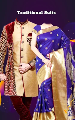 Couple Traditional photo suit Styles is a couple photo makeup app Couple dress up that give Classic Couple Traditional Dresses application. Traditional Couple Maker Photo Suit camera app gives traditional couple dress up by adding your cool photos in to variety of Most Beautiful Indian Couple HD Traditional Dresses!