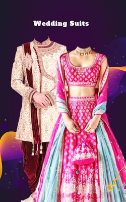 Very Beautiful Designer and lovely couple wedding dress suits, Saree available in this Traditional couple photo frames. Are you planning for any Anniversary or wedding or couple party? then try our Couple Wedding suits and impress your boyfriend or girlfriend on a photo with our Couple suits and look handsome and beautiful in single click .This "Couple Photo Wedding Suit" is for both men and women.