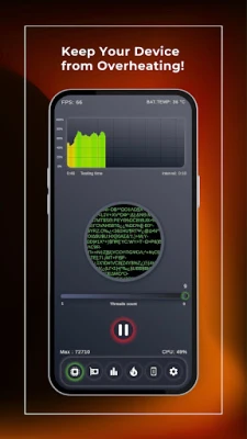 "Test Performansı CPU GPU" uygulaması, CPU'yu cihazınızdaki maksimum sayıda iş parçacığıyla yükler ve performansı ölçer. Kaç çekirdeğin yükleneceğini siz seçersiniz. Ek olarak benzersiz bir işlev, grafik çekirdeğinin işlemciden ayrı olarak yüklenmesine olanak tanır. Telefon soğutmayı kaldırabiliyorsa performans zaman içinde tutarlı kalacaktır, ancak başaramazsa CPU yavaşlayacak ve bu da hızın düşmesine neden olacaktır.