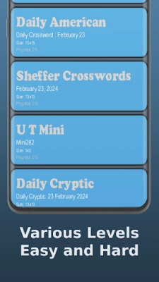Features: • New puzzles every day: There's always something new to solve with new puzzles released every day. • Multiple difficulty levels: Choose from a variety of difficulty levels to challenge yourself. • Leaderboards: Compete with friends and other players around the world on the leaderboards. • Daily streak rewards: Earn rewards for completing puzzles every day. • Offline play: Play puzzles even when you don't have an internet connection. Benefits: • Improve your vocabulary: Crossword puzzles are a great way to improve your vocabulary and learn new words. • Sharpen your mind: Solving crossword puzzles can help to improve your problem-solving skills and cognitive abilities. • Relax and de-stress: Crossword puzzles can be a fun and relaxing way to spend your time. Download Crossword Daily: Word Puzzle today and start your brain training!