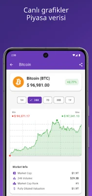 • Çok zaman dilimli grafikler, piyasa değeri ve işlem hacmi