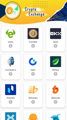 Crypto Exchange is a simple App that contains list of Premium Crypto Exchanges websites which you can access from inside the app.