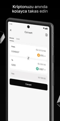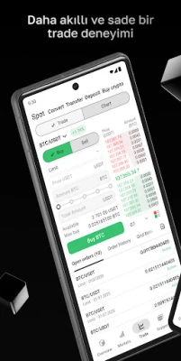 Piyasa ve limit emirleriyle sadece birkaç dokunuşla kripto alım-satımı yapın. Gerçek zamanlı fiyatları takip edin, portföyünüzü yönetin ve mobil erişimle kesintisiz işlem deneyiminin tadını çıkarın.