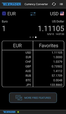 Main Features: - supports the 72 most common currencies - real-time and offline mode - 5 decimals precision - visual representation of the country related to the currency - support for bitcoin - pick your favorite currencies for quick access