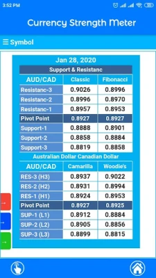*.Currency Strength Meter *.Currency 4 Type Support & Resistance Levels 1) Classic Pivot 2) Fibonacci Pivot 3) Camarilla Levels 4) Woodie's Levels
