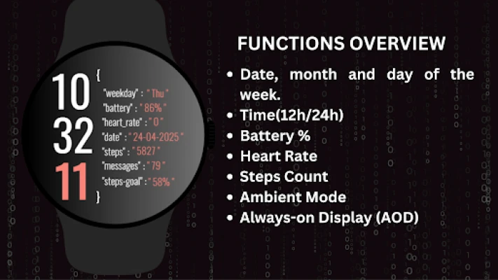 Perfect for tech enthusiasts and futurists, the Cyber Watch Face combines essential information with a sleek, modern style. Its sharp layout and bold fonts make it easy to view key metrics at a glance, keeping you informed and connected in a dynamic way.
