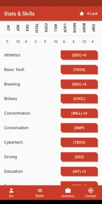 Create and manage characters and NPCs. Track hit points, armor ablation, ammunition, skills and abilities. Roll for initiative. Purchase new items and level up.