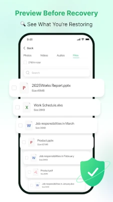 Get back accidentally deleted videos, clips, and screen recordings in original quality.