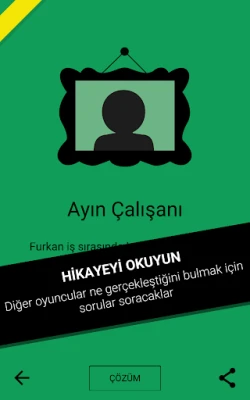 Sonra o kendi içinden hikayenin çözümünü okur, diğer kişilere söylemez. Geri kalan oyuncular gizemi aydınlatmak için hikaye hakkında soru sorarlar.