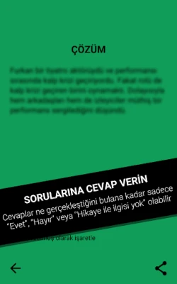 Anlatan hikayenin yeterince çözüldüğünü düşünürse oyunu sonlandırıp “Çözüm” kısmında yazan çözümü okur.
