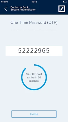 2. Generate a One-Time Password (OTP): On request, the app generates a numeric code which may be used for logging into a DB banking application.