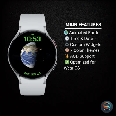 Deep Space saat yüzü ile atmosferin ötesine bir yolculuğa çıkın. Uzaydan görünen Dünya'nın etkileyici animasyonu, gezegensel hareketi ve yıldızlarla dolu derinliği bileğinize taşıyor. Temiz dijital saat ve tarih düzeniyle estetik ve işlevi birleştirir.