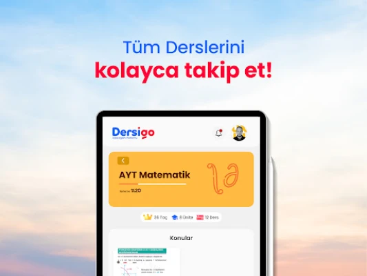Akıllı telefon uygulamamızla, sen nereye Dersigo oraya! İndir cebe, gerisini düşünme. Hocaların, ders anlatım videoların, soru bankaların, akıllı yardımcın İgo, her zaman yanında. İndir Dersigo’yu, rakiplerini cebinden çıkart.