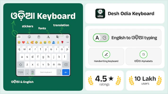 - Easy swith to English or Odia text as you need. Turn off Odia when you don't need by using the language button.