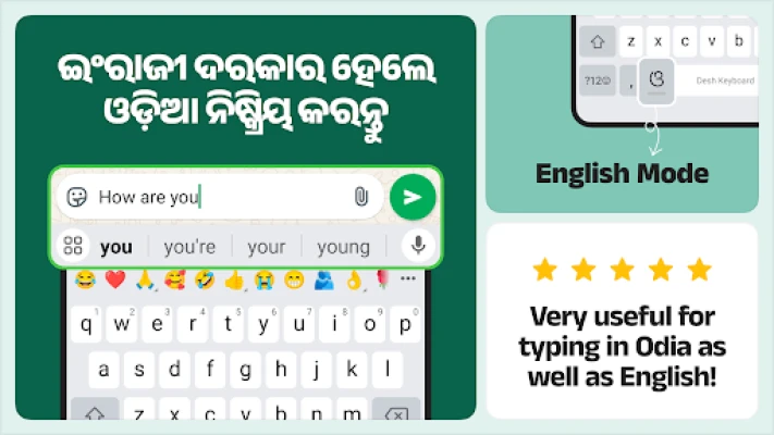 Chat with your friends and family in your native language - use native Odia text on any chatting or social media apps on your phone like a regular keyboard.
