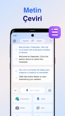 - Metin Çevirisi: Herhangi bir metni anında çevirin; iş, eğitim veya günlük kullanım için mükemmel.