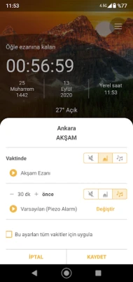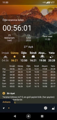 - İlk sayfa bulunduğunuz konuma en yakın merkezi otomatik olarak algılayarak namaz vakitlerini verir.