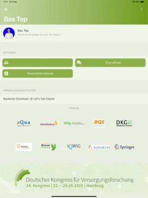 Die offizielle App für das Deutschen Kongress für Versorgungsforschung 2025 bietet Ihnen nahtlosen Zugang zu Social feed, Teilnehmende, Chat, Connection Center, Über diese App, Infos A-Z, Info A-Z, Ausstellerliste, Swipen um zu matchen und Kongress für Bürger:innen Funktionen, um Sie während der Veranstaltung verbunden und engagiert zu halten.