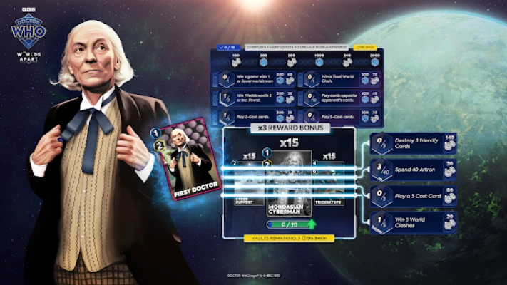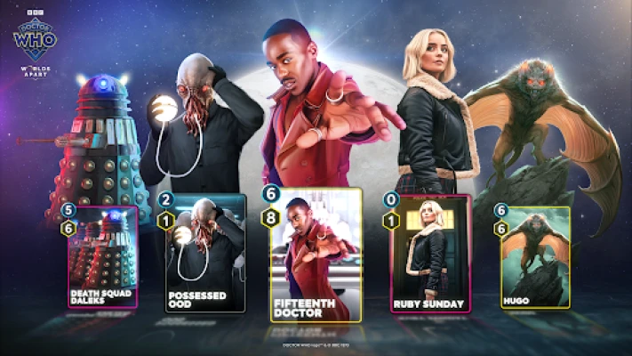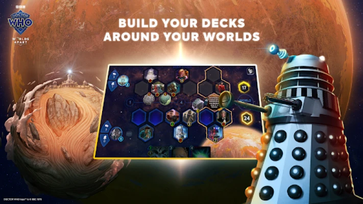 Step into the Whoniverse with "Doctor Who: Worlds Apart" — the fast, fun collectible trading card game that lets you collect, build and play with your favourite characters on your mobile device. It is your chance to strategise, outsmart and outwit opponents in dynamic World Clashes!
