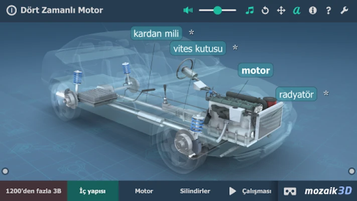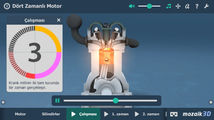 Animasyon, otomobillerde en çok kullanılan motor tipinin çalışması gösteriliyor. Uygularımızla öğrenme eğlenceli hale gelir.