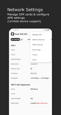 Get real-time insights into your SIM card's network connection with detailed information, including: