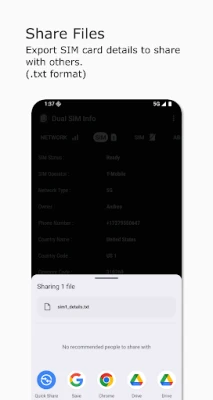 Access all essential SIM card details in one convenient place. You can even copy or export your SIM info in .txt format for easy sharing or record-keeping.