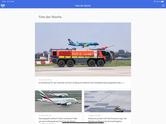 DUS to go ist die zentrale Kommunikations-App des Düsseldorfer Airports, dem drittgrößten Flughafen Deutschlands. Die App bietet tagesaktuelle Informationen aus dem Unternehmen und den einzelnen Bereichen per Push direkt aufs Smartphone. Ergänzt wird das Angebot durch aktuelle Stellenausschreibungen. Nach Registrierung stehen Mitarbeitern des Unternehmens weiterführende, exklusive Informationen zur Verfügung.