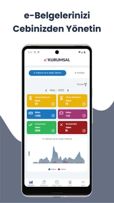 e-Kurumsal mobil uygulaması ile e-Fatura, e-Arşiv, e-İrsaliye, e-SMM ve e-MM işlemlerinizi kolaylıkla gerçekleştirebilirsiniz. Özelliklerimizin bir kısmı;