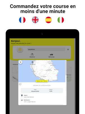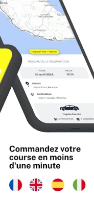 disponibles à travers toute l'île de la Réunion. Cette application innovante offre une interface utilisateur intuitive permettant aux utilisateurs de localiser rapidement un chauffeur proche, d'obtenir des estimations de tarifs en temps réel et de réserver un trajet en quelques clics, garantissant ainsi une solution de transport fiable et efficace pour les résidents et les visiteurs de l'île.