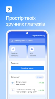 EasyPay — простір ваших зручних та вигідних платежів. Оплачуйте комунальні послуги (газ, світло, воду тощо), поповнюйте мобільний та інтернет, здійснюйте переказ грошей з телефону на карту чи з картки на картку (P2P), а також купуйте квитки для проїзду в транспорті одразу в застосунку. Усього за декілька кліків можна здійснити будь-яку фінансову операцію без черг та довгих очікувань.