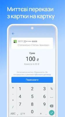 💸 Переказ коштів (з карти на карту, з мобільного рахунку на картку, за реквізитами);