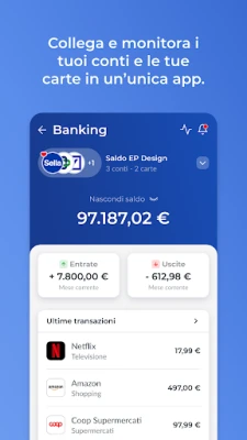 💳 Non ti servirà più saltare da un'app a un'altra per vedere il tuo saldo complessivo dei tuoi conti e movimenti bancari.