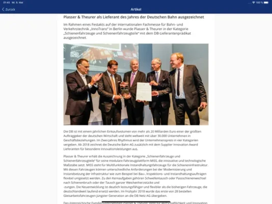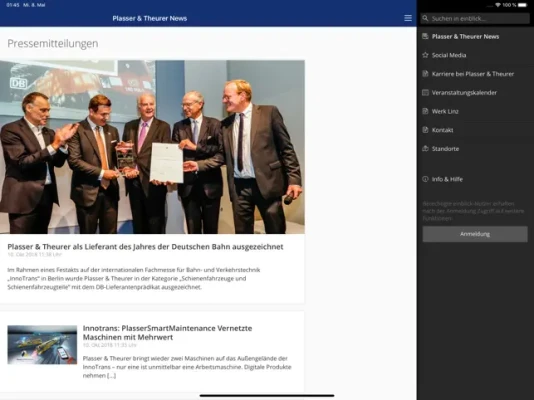 Die einblick-App bietet aktuelle Informationen und Neuigkeiten rund um Plasser & Theurer. Mit Push-Benachrichtigungen sind Sie somit immer und überall auf dem neuesten Stand.
