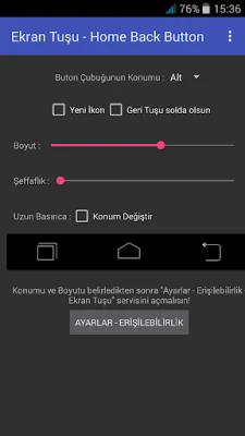Nasıl kullanılır ? - uygulamayı açtıktan sonra izin isterse onayla - konum, boyut vs. ayarla - "Ayarlar - Erişilebilirlik" tuşuna tıkla - "Ekran Tuşu - Home Back Button" u bul ve aktifleştir