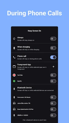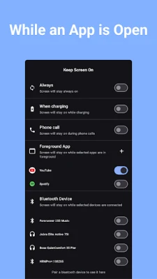 - 📱 Belirli Bir Uygulama Önde İken Ekran Açık: Açık olduğunda ekranınızı uyanık tutması gereken uygulamaları seçin.