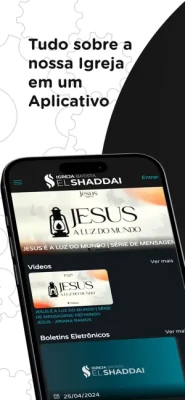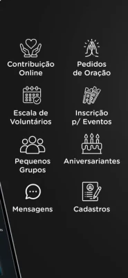 O APP permite o relacionamento entre a Igreja e seus membros ou visitantes.
