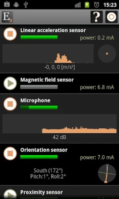 - displays sensor information, turn sensors on/off, microphone